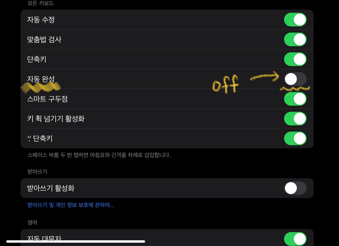 아이패드 자동완성 끄기, 5초만에 해결하는 방법