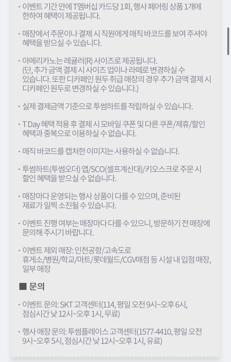 -결제하기전 Tday 매직 바코드를 매장직원에게 보여주세요.
